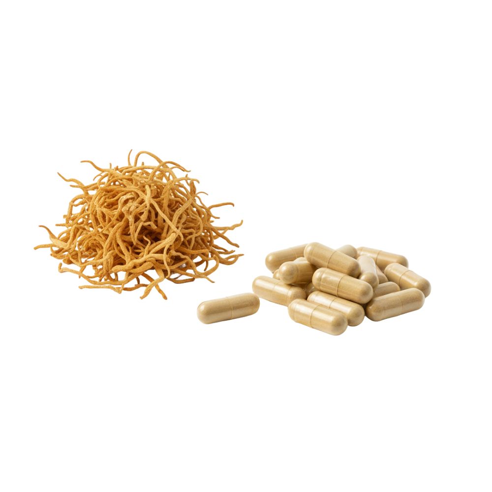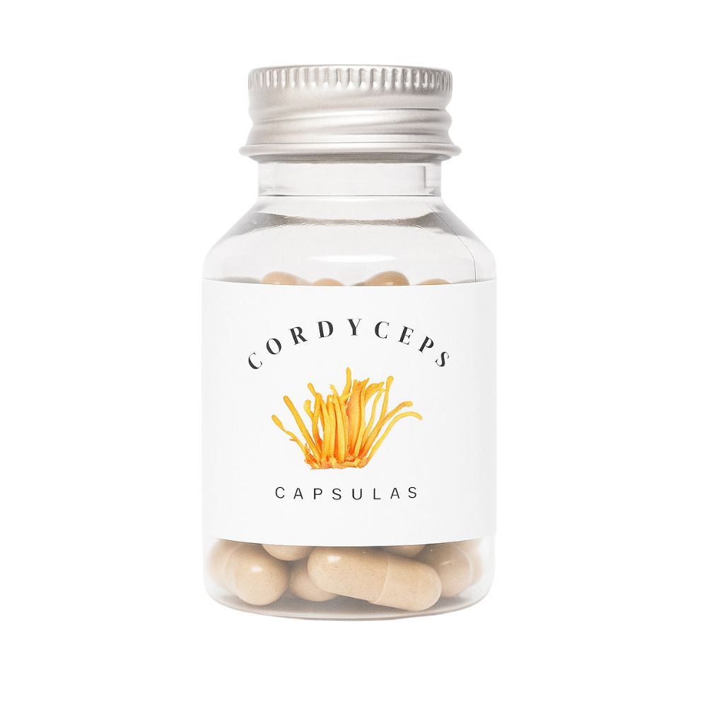 Cada cápsula contiene 200 mg de Cordyceps en polvo.